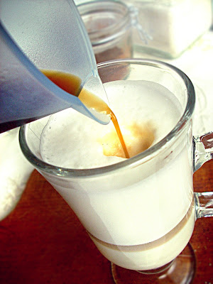 Aby zrobić latte macchiato należy powoli wlewać espresso do spienionego, ciepłego mleka tworząc w ten sposób charakterystyczne, efektowne warstwy. Aby przygotować warstwową kawę domowym sposobem bez użycia ekspresu. Idealnie spienione mleko.